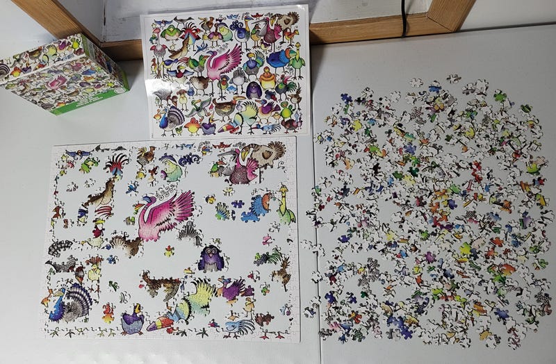 I always have a jigsaw puzzle going at home. Here’s a photo of the current state of my current puzzle.